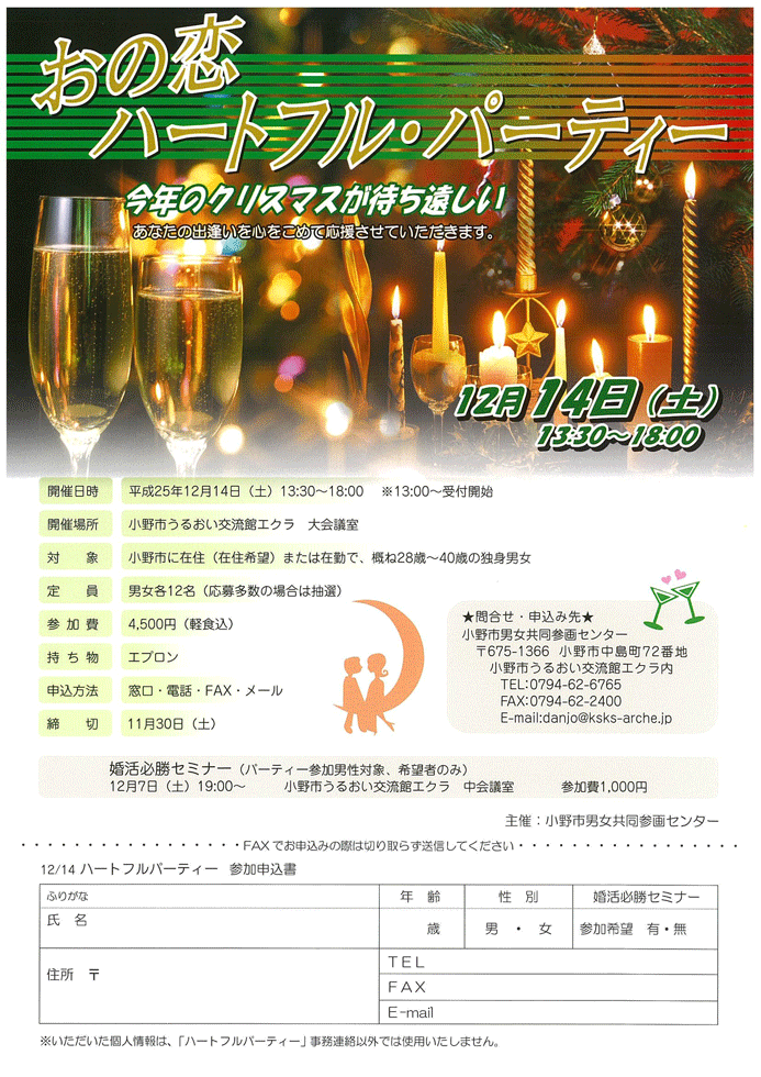 ※婚活必勝セミナー(パーティー参加男性対象、希望者のみ) ■ 実施日 ■ 2013年12月7日(土曜日)